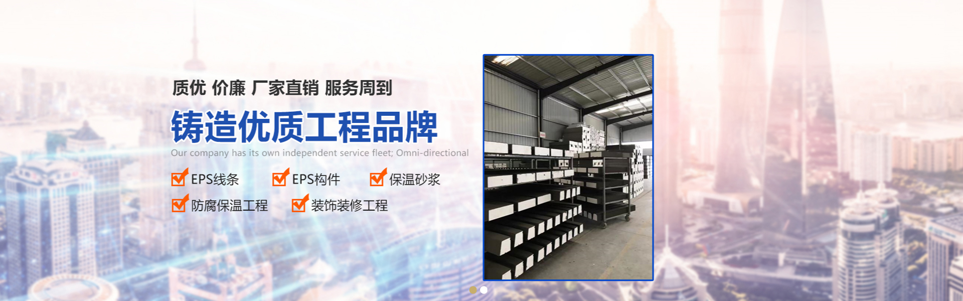 是一家專業生產各種型號的EPS線條、GRC線條、保溫砂漿,防腐保溫工程和裝飾裝修工程施工為主的高科技民營企業,專業致力于外墻保溫材料和外墻裝飾線條的生產和施工工程;